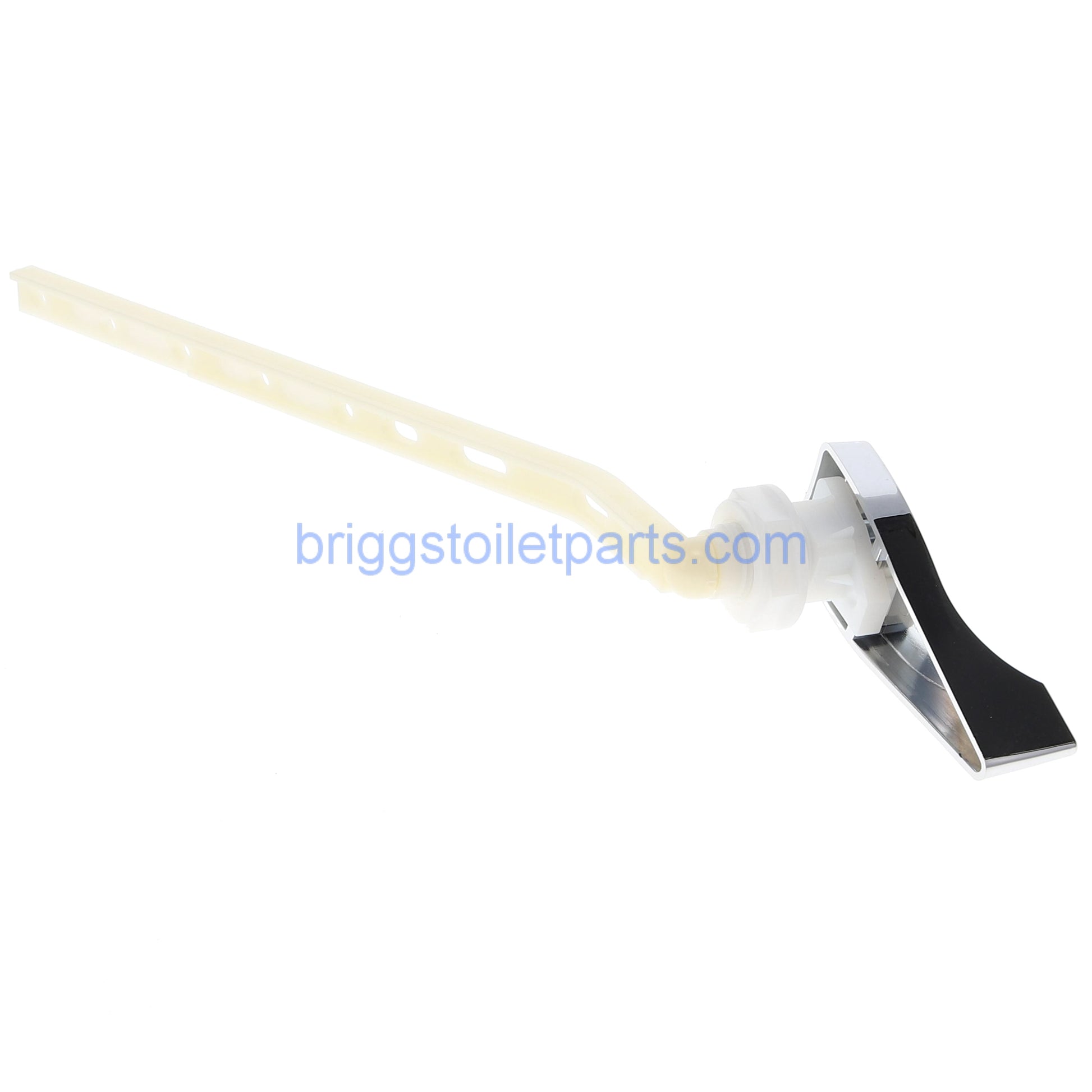 Genuine Briggs B357105 Chrome Trip Lever comes with the reverse thread lock nut that secures the lever to the tank. Reverse thread meaning, you will turn it to the right to loosen, and left to tighten it. The B357105 is an all plastic lever designed for many Briggs tanks including the, 4130, 4434, 4438, 4440, 4442, and 4443 just to list a few.